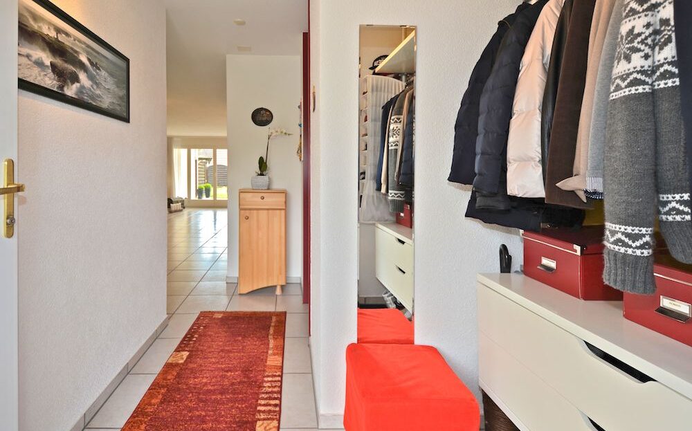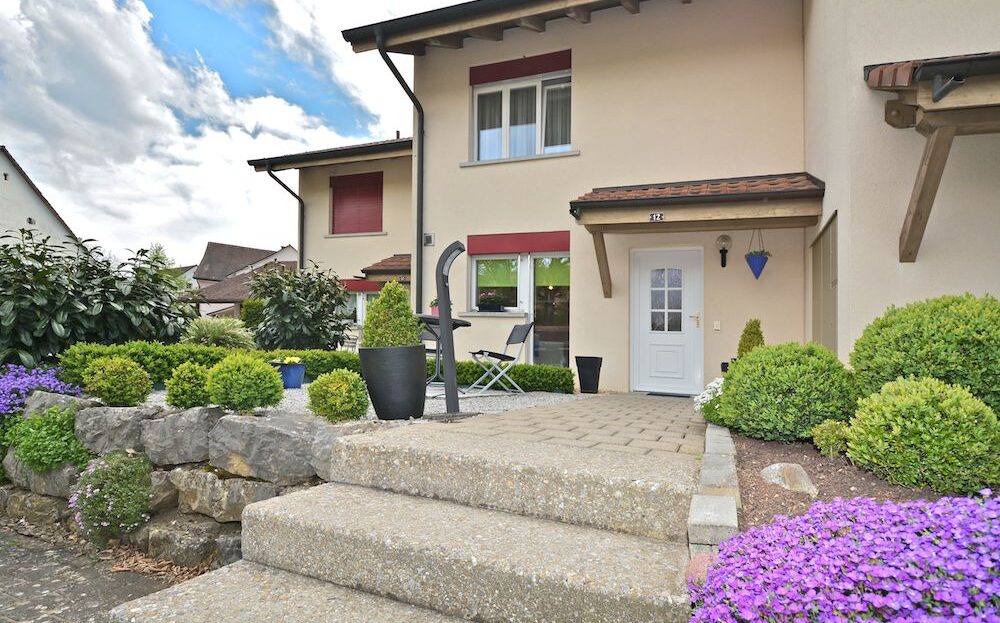 Dieses sonnige 5.5-Zimmer Mittelhaus auf zwei Etagen und mit ausgebautem Dachstock befindet sich in einem zentral gelegenen und doch ruhigen Wohnquartier in Riniken. Die Zufahrt erfolgt von Südwesten her. Ihr Fahrzeug parkieren Sie entweder auf dem Aussen-Stellplatz oder in der Carport. Der Gebäudekomplex umfasst drei freundlich wirkende Reihenhäuser, die leicht zurückversetzt angeordnet sind. Der gedeckte Hauseingang liegt etwas erhöht. Sie erreichen ihn über wenige Stufen und einen gepflasterten Weg durch den gepflegten Vorgarten.