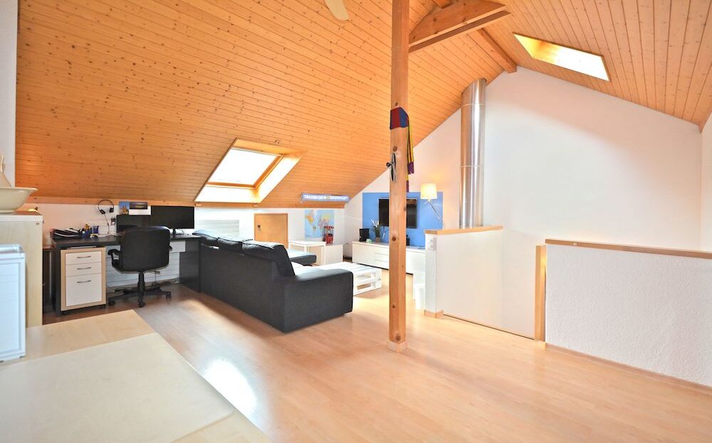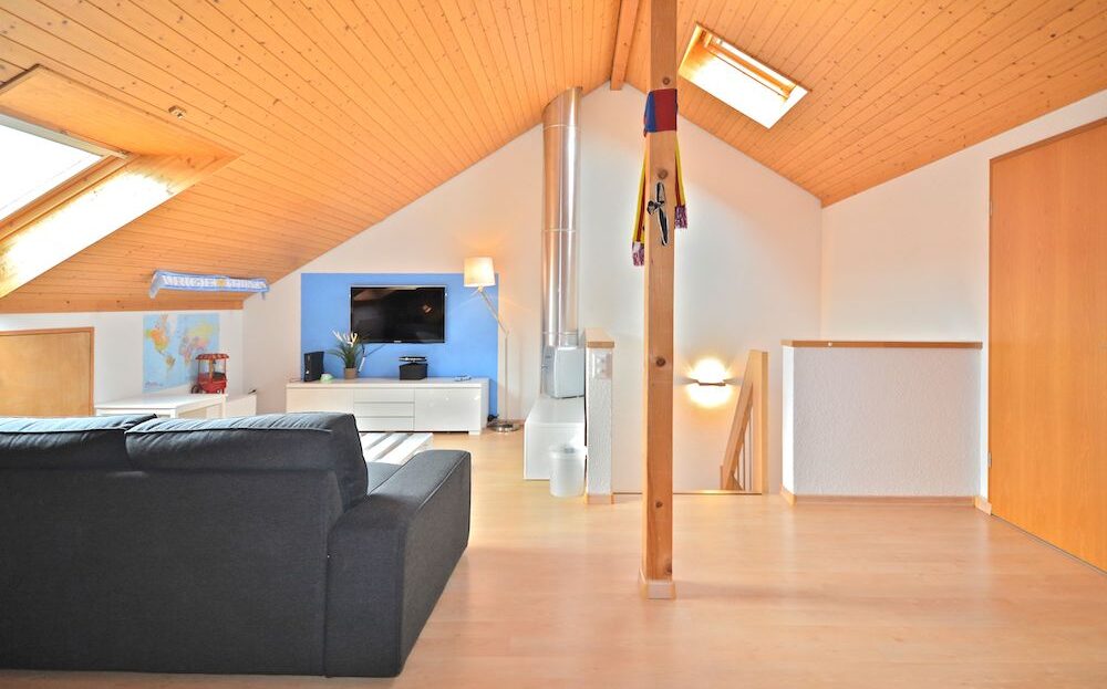 Gepflegtes, ruhig gelegenes 5.5-Zimmer Mittelhaus über zwei Etagen in Riniken. Attraktiv ausgebauter, sonniger Dachstock, familienfreundliche Raumaufteilung und geräumiges Wohnzimmer mit Cheminée. Gedeckter Aussensitzplatz mit Privatsphäre und Blick in den Garten.