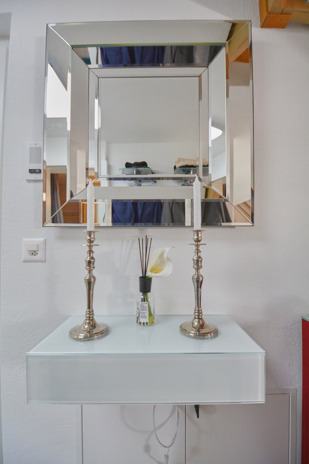 Mit dem Lift geht’s zum Eingangsgeschoss. Schon im Entrée macht sich der frische, jugendliche Charme gepaart mit einem wohnlichen Ambiente bemerkbar. Dieses Flair ist charakteristisch für die gesamte Wohnung. Vom Eingangsbereich aus ist ein helles, geräumiges Schlafzimmer betretbar. Der Parkettboden harmoniert perfekt mit den weiss lasierten Decken und den hellen Wänden und Sichtbalken. Massangefertigte Einbauschränke stehen bereit. Eine Nasszelle mit Badewanne befindet sich neben dem Zimmer. Von der Garderobe aus fällt der Blick automatisch auf den offenen Durchgang zum Wohnzimmer. Der grosszügige, offen konzipierte Wohn- und Essbereich erstreckt sich über die gesamte Breite der Etage. Sofort stellt sich ein Loftartiges Raumgefühl ein. Durch die grossflächigen Fenster fliesst jederzeit viel Tageslicht ins Innere. Die steilen Dachschrägen beeinträchtigen die Raumhöhe in keiner Weise. Ein heller durchgängig verlegter Plattenboden verleiht den Räumlichkeiten einen natürlichen Glanz und ein einheitliches Erscheinungsbild. Während der Essplatz vom Luftraum profitiert, besticht die gemütliche Wohnecke mit einem perfekt platzierten Cheminée.